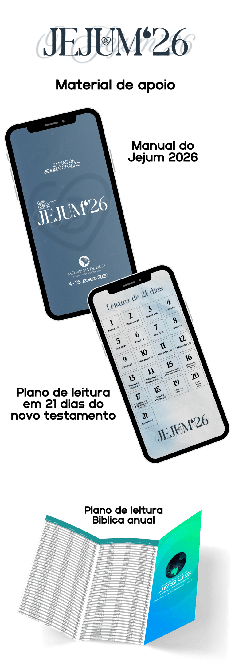 O Jejum de 21 Dias é um tempo separado para buscar a Deus com mais intensidade por meio da oração, da Palavra e da renúncia. Durante esses dias, caminhamos juntos como igreja, fortalecendo nossa fé e alinhando nosso coração ao propósito de Deus.